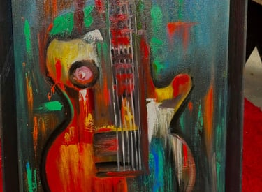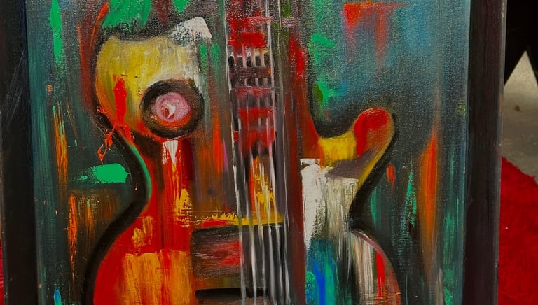 🎨 Acrílico sobre tela – Técnica presente também em suas aulas e exposições coletivas, usada especialmente pelos alunos. O acrílico confere vivacidade e secagem rápida, ideal para trabalhos modernos e abstratos.